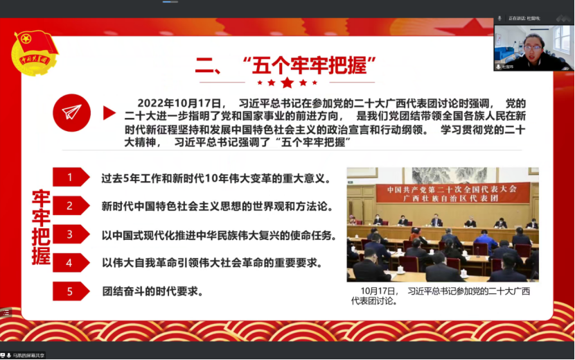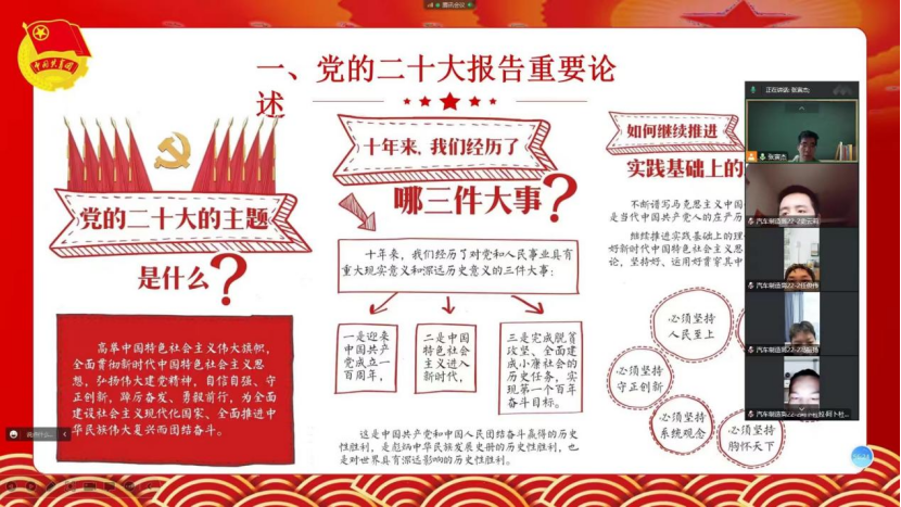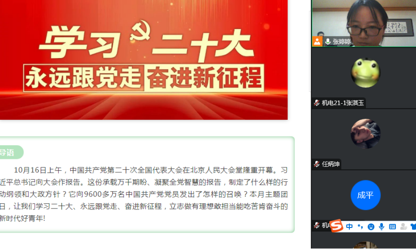 beat365正版唯一官网团委通过发布《学习二十大、永远跟党走、奋进新征程》统一讲稿和课件,组织全院116个团支部,通过主题团课,带领支部团员青年将二十大精神学习感悟,实现“院-系-班”三级团员青年全覆盖,推动学习宣传不断走深走实,实现团支部覆盖率100%。