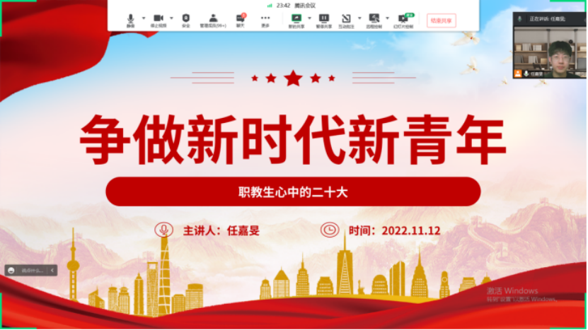 学院团委利用新媒体平台在深入学习党的二十大之际推出“我为祖国送祝福”“线上微团课”“青·听”FM 读书栏目。学院各系团总支也结合实际开展了“团员青年有话说”“主题演讲比赛”“争做新时代青年——职教学生心中的二十大”等主题教育活动,用团员青年喜欢的语言、形式和载体宣传好党的二十大精神,引导广大团员青年争当有理想、敢担当、能吃苦、肯奋斗的新时代好青年,在学院形成热烈、活跃的学习氛围。
