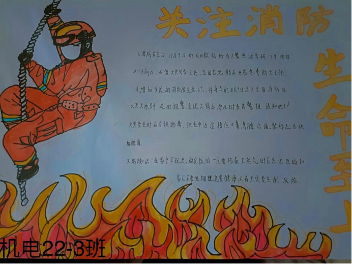 此次消防安全宣传活动安排中,机电工程系秉承着对全系师生生命安全高度负责的工作理念,统一安排,周密策划、及时部署,通过官网推送、主题学习班会等方式开展了内容丰富、形式多样、效果明显的主题宣传,形成了全系共同关注消防安全工作的良好氛围,增强了师生消防安全意识,将消防安全理念根植于每一个人心中,为共筑平安和谐校园打下了坚实的基础。