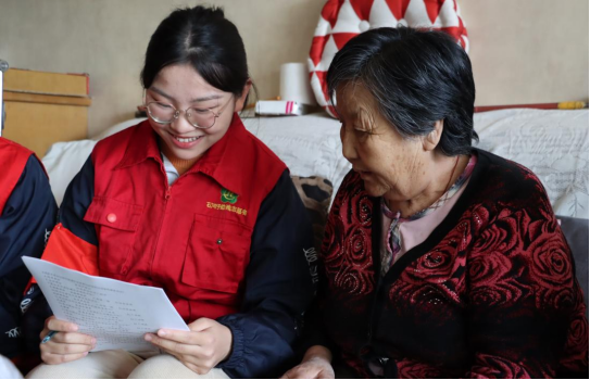 学院志愿者吴春晓说:“在走访慰问的时候,爷爷奶奶也非常热情,和我们说了很多他们来到新疆的经历和故事,老人的生活非常俭朴,能看得出来爷爷奶奶感情特别好,非常热爱生活,我们多陪他们说说话也能让他们开心一些。”