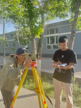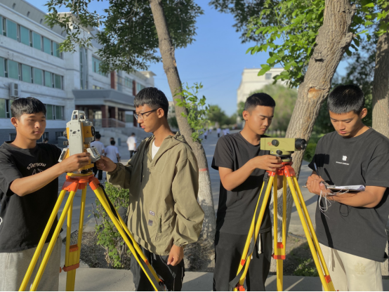 高职组工程测量赛项的同学们沿着水准路线,在各个观测点进行准确测量,在各个不同的控制点上完成精确的数字测图。虽然天气炎热,但丝毫不减学生对测量的热情,努力突破自己的极限!