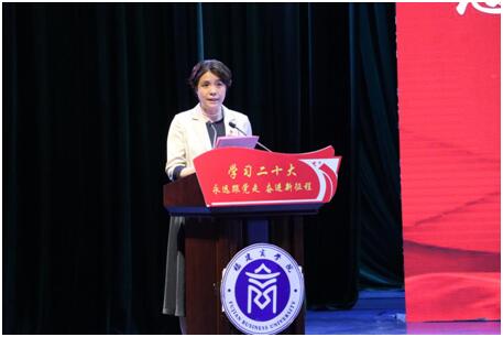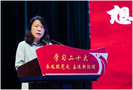 校长程灵发表讲话,充分肯定了2022年度学校团学工作取得的成绩,向受表彰的先进集体和先进个人表示热烈祝贺,并代表校党委对广大青年团员提出三点希望:一要做信念坚定的有志青年,坚定理想信念,树立远大抱负,坚定不移听党话、跟党走,把炽热的青春倾注到报效祖国、服务人民的具体实践中。二要做深学争优的有识青年,将学习作为终身追求,潜心向书本学习,虚心向人民群众学习,增长才干,全面提升眼界学识,不断丰富专业知识。三要做顽强拼搏的有为青年,牢记“明德、诚信、允能、笃行”的校训,敢想敢为又善作善成,用青春的能动力和创造力在民族复兴的新征程中劈波斩浪、奋勇前行。