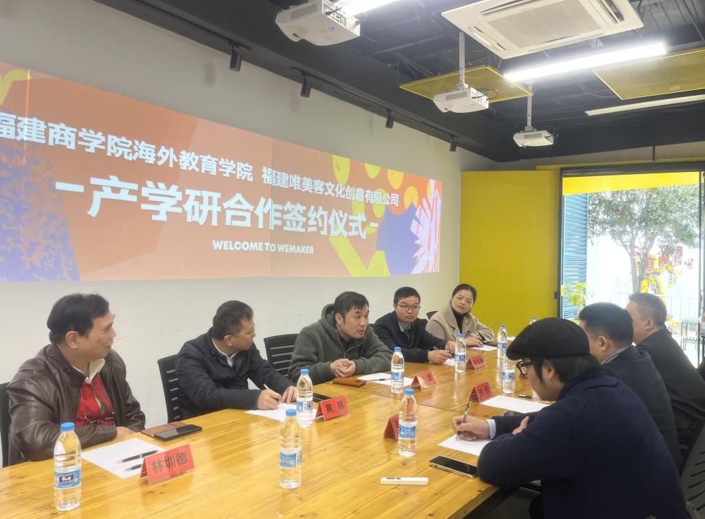 福建唯美客文化创意有限公司董事长许权带领大家参观了公司的展厅、体验馆,介绍了公司的发展情况和规划。校企双方召开座谈会,围绕产学研合作进行了深入交流,签订了合作协议。双方表示在后期发展中,希望通过唯美客这个合作窗口,搭建专业实践教学平台,将理论与实践结合,突出闽台特色,讲出闽台故事,共同推动漳平乡村振兴项目。