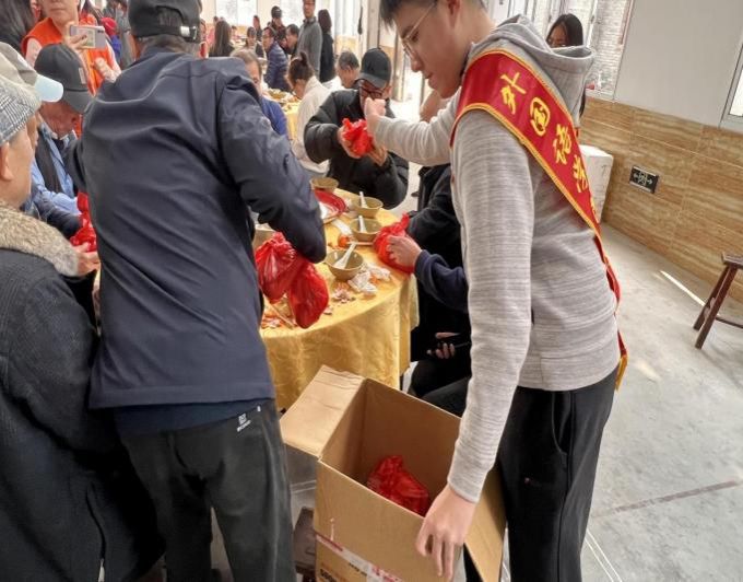 “拗九关爱颂孝亲,尊老爱幼暖人心”主题实践活动由外国语学院教工读书社联合外国语学院大学生思想政治教育实践基地马尾区长柄村开展。师生们用糯米、红糖、花生、红枣、荸荠、桂圆干等原料,煮成“拗九粥”,把一碗碗“拗九粥”亲手送到老人们的手中,展现了“福“文化的核心价值观——孝道。