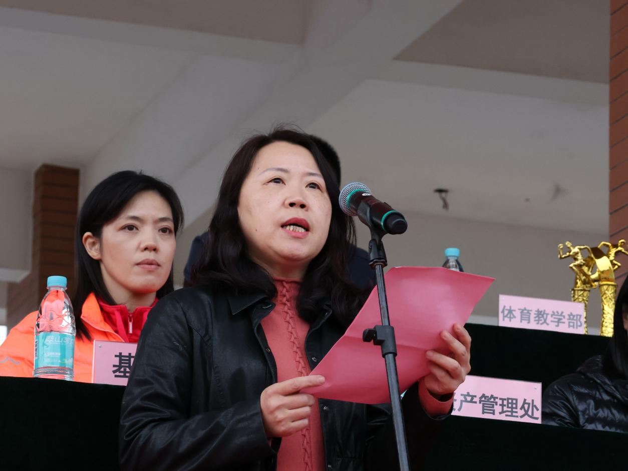校党委副书记徐晓丹致闭幕词,代表大会组委会向全体裁判员、工作人员、志愿者表示衷心的感谢,向全体运动健儿致以崇高的敬意!徐晓丹表示,本届运动会按照疫情防控要求,组织科学周密、指挥协调得当,是一场成功的盛会、精彩的盛会、团结的盛会、文明的盛会。习近平总书记在党的二十大报告中提出:“促进群众体育和竞技体育全面发展,加快建设体育强国”,为高校加强和改进新时代体育工作指明了前进方向、提供了根本遵循。我们要深入贯彻落实习近平总书记关于体育工作的重要论述和重要指示批示精神,牢固树立健康第一的教育理念,不断深化体育教学改革,帮助青年学生在体育锻炼中享受乐趣、增强体质、健全人格、锤炼意志。希望大家继续发扬在体育运动中所展现出的优良传统和坚韧品质,以更加强健的体魄、崭新的姿态和大无畏的精神,去迎接学习和工作的各种挑战,自信自强迈向未来!
