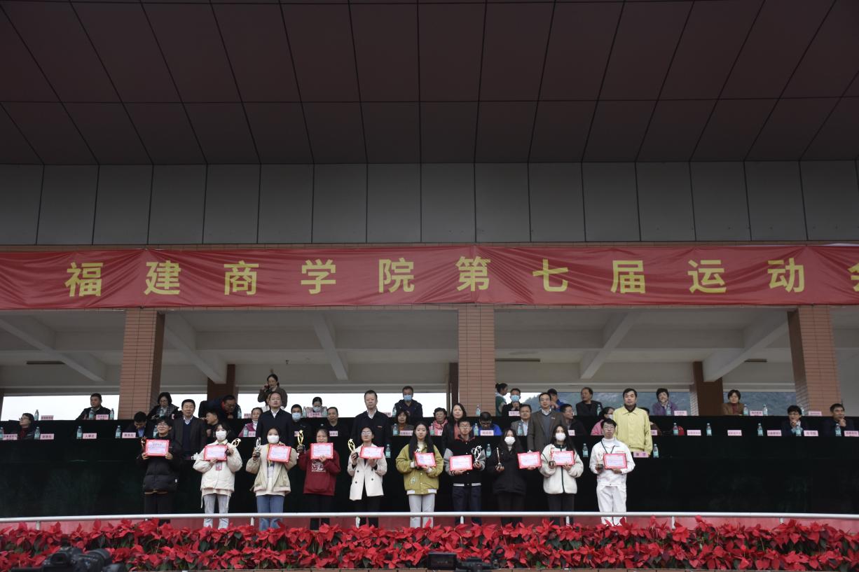 副校长萧罡宣布荣获第七届运动会入场式表演前十名代表队名单、团体操表演前十名代表队名单、学生个人体育道德风尚获奖名单、教师个人体育道德风尚奖名单、集体体育道德风尚奖前五名代表队名单以及最佳组织奖代表队名单。总裁判长曾猛宣布荣获第七届运动会学生组比赛团体总分前六名名单、教工组比赛团体总分前六名名单。现场还举行了颁奖仪式。