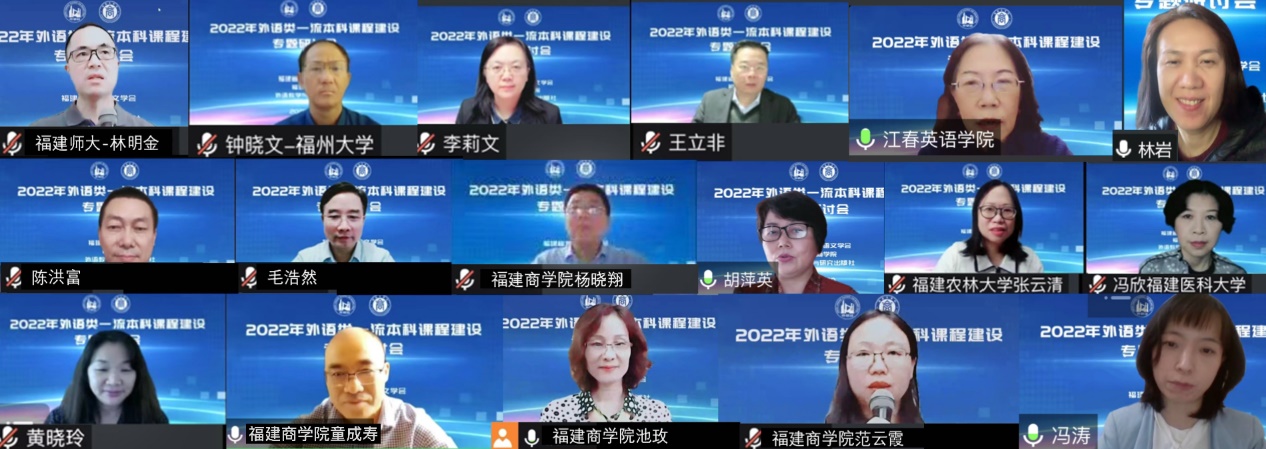 北京外国语大学的李莉文和林岩教授、北京语言大学王立非教授、对外经贸大学江春教授、中国石油大学毛浩然教授、新葡的京集团350vip8888首页童成寿副教授分别就一流专业和一流课程的建设作专题主旨报告。福建工程学院胡英萍教授、福建农林大学张云清教授和福建医科大学冯欣教授作交流发言。