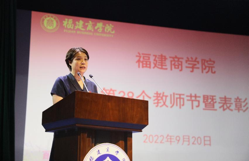 程灵强调,今年教师节前夕,习近平总书记给北京师范大学“优师计划”师范生回信,对教师队伍提出了殷切期望。全体教职工要认真学习贯彻总书记的回信精神,坚持立德树人,强化责任担当,努力成为党和人民满意的“四有”好老师。她提出三点希望:一是希望大家以立德修身为本,满怀仁爱之心培根铸魂育人。坚守教书育人初心、言传身教本色、潜心问道形象,做良好师德师风的践行者,做学生为学、为事、为人的“大先生”,切实担负起立德树人的时代使命。二是希望大家以治学精业为要,精心执教潜心科研提高水平。提高自我发展内驱力和科研团队战斗力,在“十四五”期间扛起重任、挺立潮头,力争实现“补短板、育特色”的新突破。三是希望大家以荣校兴校为任,奋楫笃行投身学校事业发展。让“荣校”“兴校”成为每一位福商人的自觉,不断凝聚“爱校如家”的精神合力、不断增强建设区域知名商科大学的行动效力。
