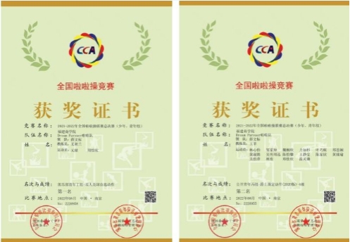 8月18日,2021-2022全国啦啦操联赛(总决赛)比赛顺利落幕。新葡的京集团350vip8888首页啦啦队荣获俱乐部青年丁组-双人花球自选动作第一名、俱乐部青年丙组-集体花球自选动作第二名、公开青年丙组-爵士规定动作(2020版)-4级第二名、公开青年丙组-双人爵士自选动作第四名、俱乐部青年丙组-双人花球自选动作第五名等多项佳绩。带队教练员尤秋兰、王菲荣获“优秀教练员”称号。