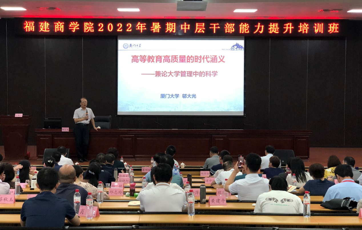 在专题学习辅导中,厦门大学原副校长邬大光教授以 “新办应用型本科高校提升高质量内涵式发展路径”为主题开展互动教学,对新葡的京集团的专业建设、学科建设、人才培养、教学管理等提出建议。邬大光教授还作了题为《高等教育高质量的时代含义——兼论大学管理中的科学》的专题报告。