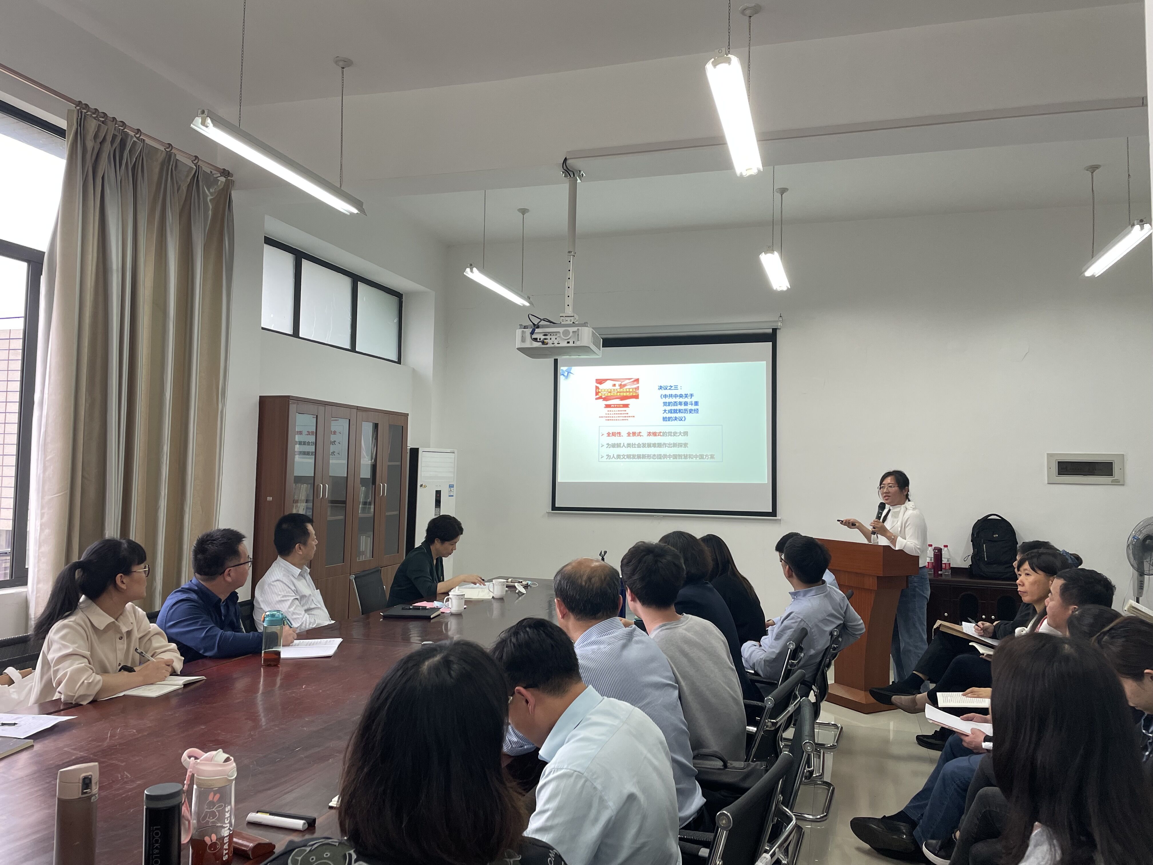 会上,马克思主义学院教师围绕本学期教学专题《百年奋斗谋复兴,勇毅前行兴伟业》展开集体备课。刘贤玲、陈彬两位老师对该专题的内容进行了教学片段展示并分享了自己的教学思路。参会的老师们从不同角度结合自己的思考畅所欲言,分享了自己对其中部分知识点的教学设计及教学效果的看法。