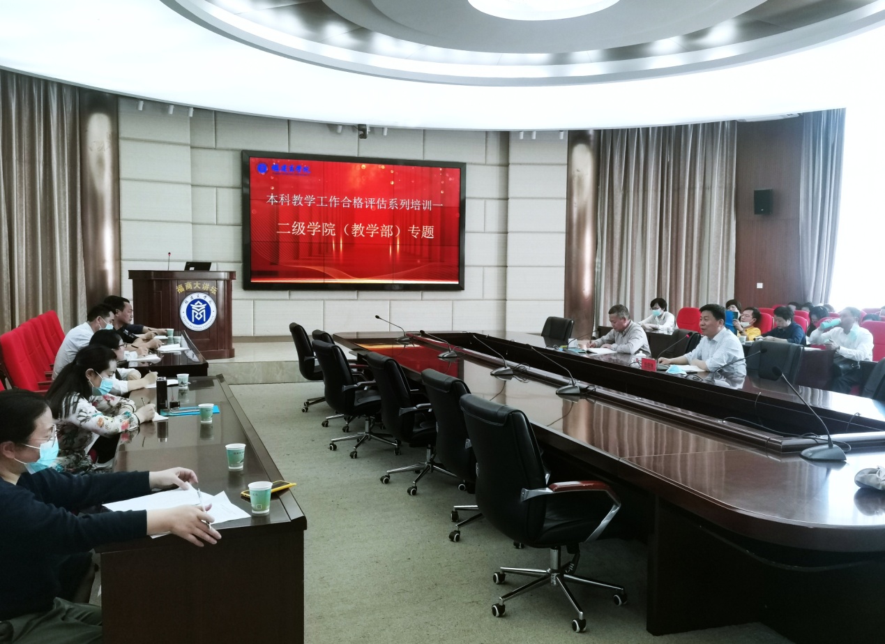 近日,新葡的京集团在连江校区召开本科教学工作合格评估二级学院(教学部)专题培训会。副校长杨晓翔,二级学院(教学部)院长、教学副院长和教学、实训干事,各单位评估工作联络员、质量监控与评估处工作人员等参加会议。