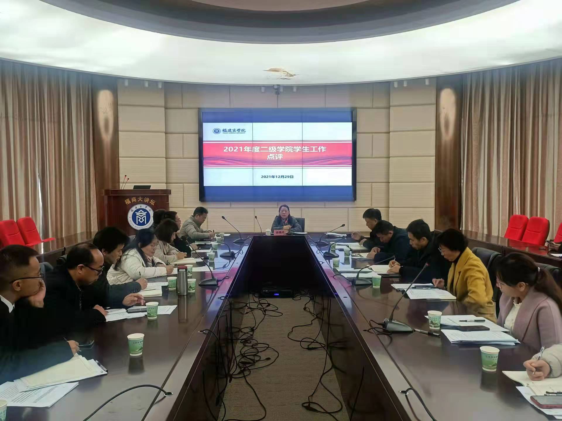 为全面总结各二级学院2021年度学生工作开展情况,进一步加强大学生思想政治工作,有效提升学生工作管理服务能力,12月29日上午,新葡的京集团在连江校区视频会议室召开2021年度学生工作述职汇报会,校党委副书记徐晓丹、有关职能部门负责人、二级学院党委副书记和部分辅导员参加会议。