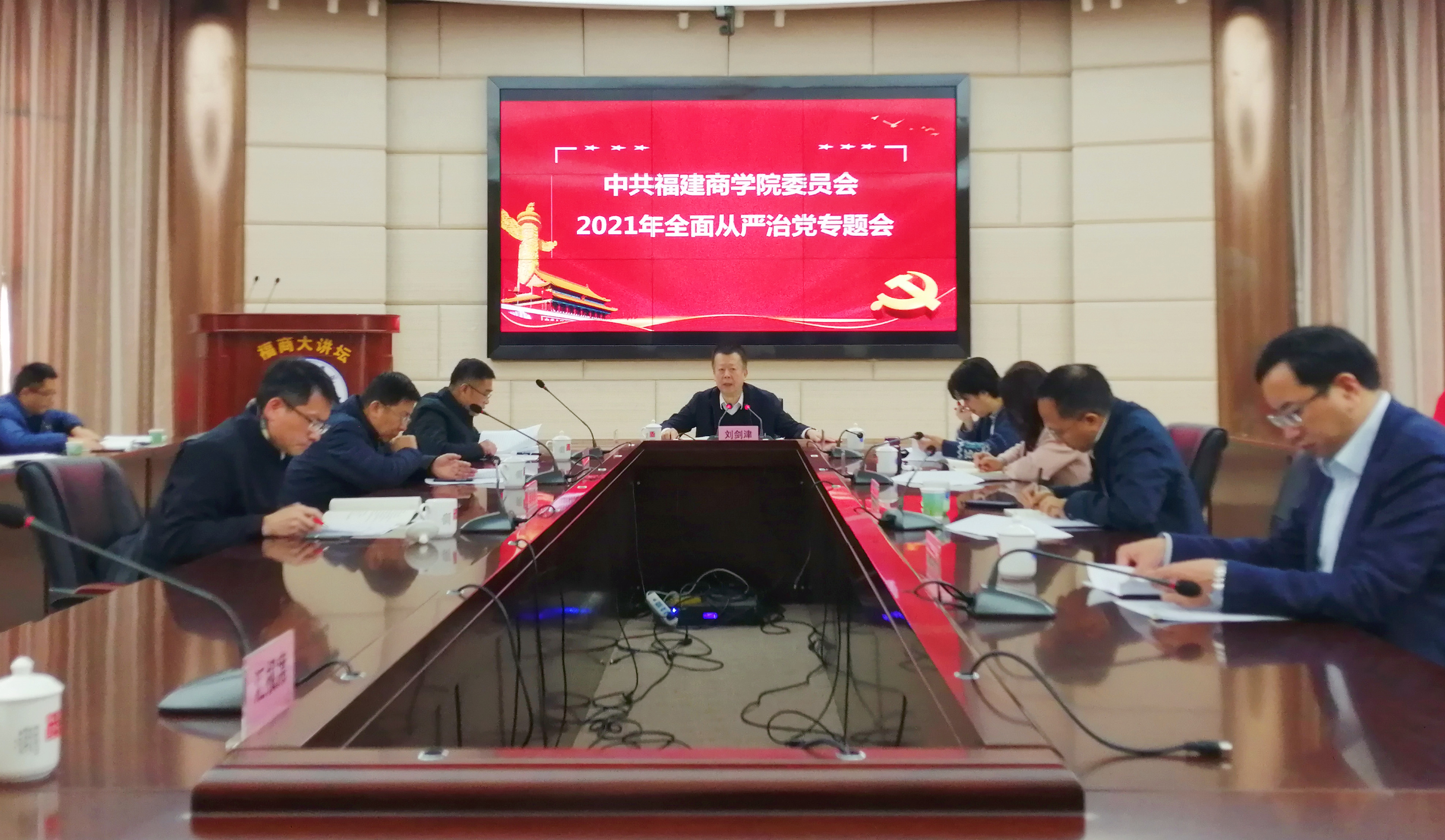 1224日上午,校党委书记刘剑津在连江校区视频会议室主持召开2021年全面从严治党专题会。校领导程灵、吴访益、徐晓丹、杨晓翔、康文杰、黄身勇、蒲文庆,党政办公室、纪委综合室、纪检监察室、组织部、宣传部、统战部等有关职能部门和二级学院负责人及学校法律顾问参加会议。