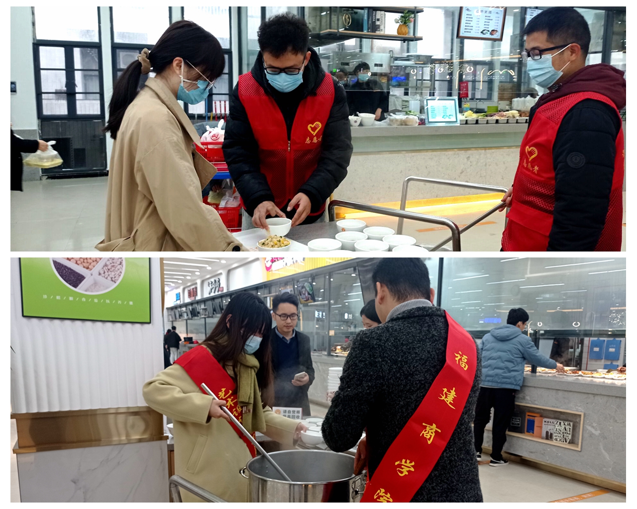 党员志愿者为师生和食堂员工送祝福
