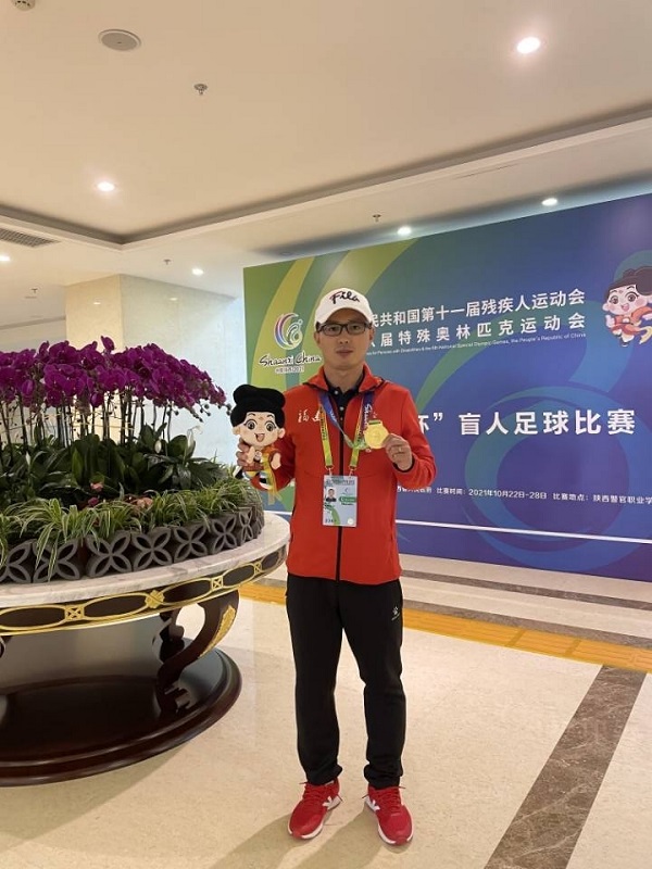 体育教学部足球教师李进老师作为福建省盲人足球队教练组成员,无私奉献,积极投入社会服务,利用课余时间带领盲人运动员进行集训备战,带领福建省盲人足球队在2021年全国第十一届残疾人运动会盲人足球比赛中勇夺金牌,并荣获集体“全国体育道德风尚奖”。