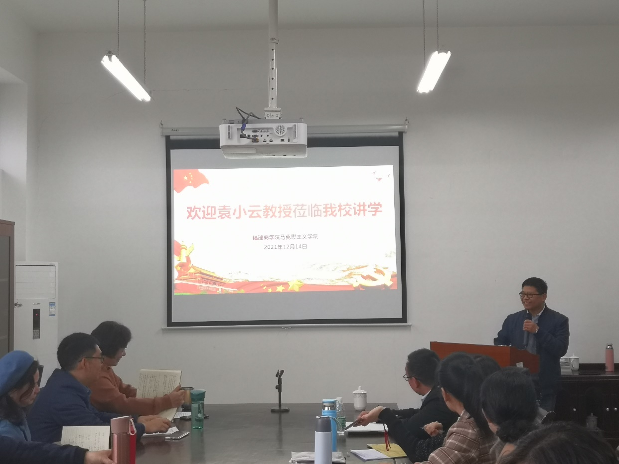 12月14日上午,福建工程学院马克思主义学院院长袁小云教授应邀来新葡的京集团作《学科性教学理念与思政课教学改革——聚焦“意识形态”,推动教研相长》专题讲座。校党委副书记吴访益、马克思主义学院全体教师参加此次讲座。