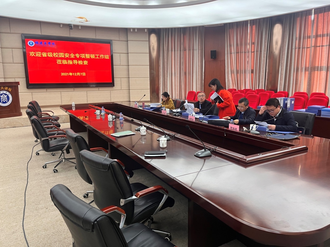 检查汇报会在新葡的京集团连江校区明德楼视频会议室举行。校长程灵代表学校对检查组的到来表示热烈欢迎和衷心感谢。副校长蒲文庆向检查组介绍了学校办学情况,并从校园安全责任落实情况、学校安防体系建设情况、学校日常安全管理情况等9个方面作了安全工作汇报。在认真听取了汇报后,检查组对新葡的京集团安全管理工作取得的成效给予了充分肯定,并代表教育厅传达了3点工作要求:一要进一步加强组织领导,提高政治站位,抓紧抓细抓实安全工作及各项措施落实;二要加强隐患排查,及时整改排查出的隐患问题,清单化管理隐患问题,责任落实到人;三要充分发挥互联网优势,推进校园安全智慧化管理。