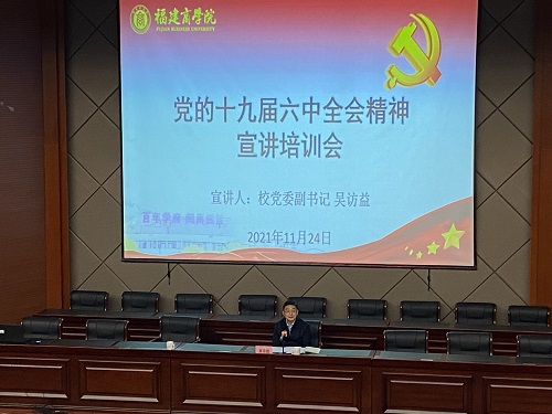 11月24日下午,按照校党委部署安排,校党委副书记吴访益为马尾校区党员、干部和教职工作了宣讲培训。
