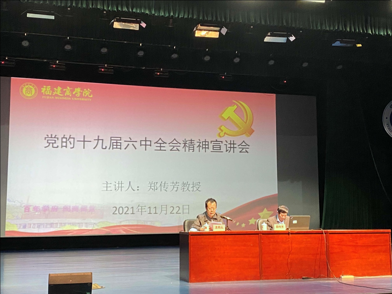 11月22日,新葡的京集团在连江校区举行党的十九届六中全会精神宣讲培训会。邀请学习贯彻党的十九届六中全会精神省委宣讲团成员、中央马克思主义理论硏究和建设工程首席专家郑传芳教授作辅导报告。在家校领导刘剑津、黄斌、吴访益、杨晓翔、康文杰、黄身勇、蒲文庆和连江校区党员、干部参加宣讲培训会。会议由校党委书记刘剑津主持。