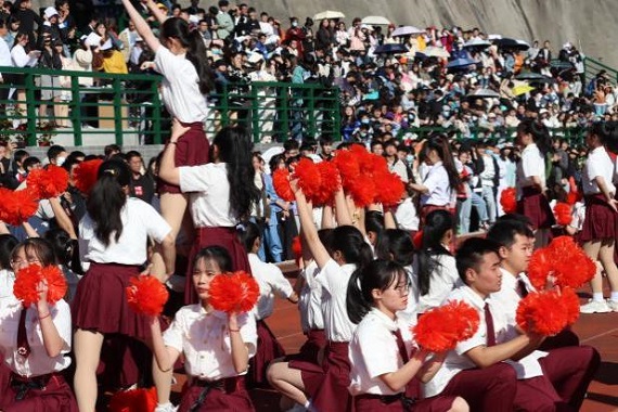 黄斌校长在开幕词中从培养德智体美劳全面发展的社会主义建设者和接班人的角度阐述了发展体育事业的重要意义,介绍了近年来学校在体育方面所取得的成绩,他对师生们提出三点希望,一要热爱运动,提振精气神。希望大家积极锻炼身体、增强体魄,磨砺意志和毅力,提升抗压能力,拥有积极健康的心态。二要珍惜机会,认真迎战备战。希望全体运动员、指导老师、裁判、有关部门各司其职,确保运动会的顺利开展。也希望大家增强集体荣誉感和归属感,培养团队合作精神,营造和谐团结向上的校园氛围。三要开拓进取,努力有所作为。希望大家将从运动会中体会到的努力拼搏、勇敢坚强和集体主义精神贯穿于今后的学习和工作中,努力做德智体美劳全面发展的社会主义建设者和接班人。