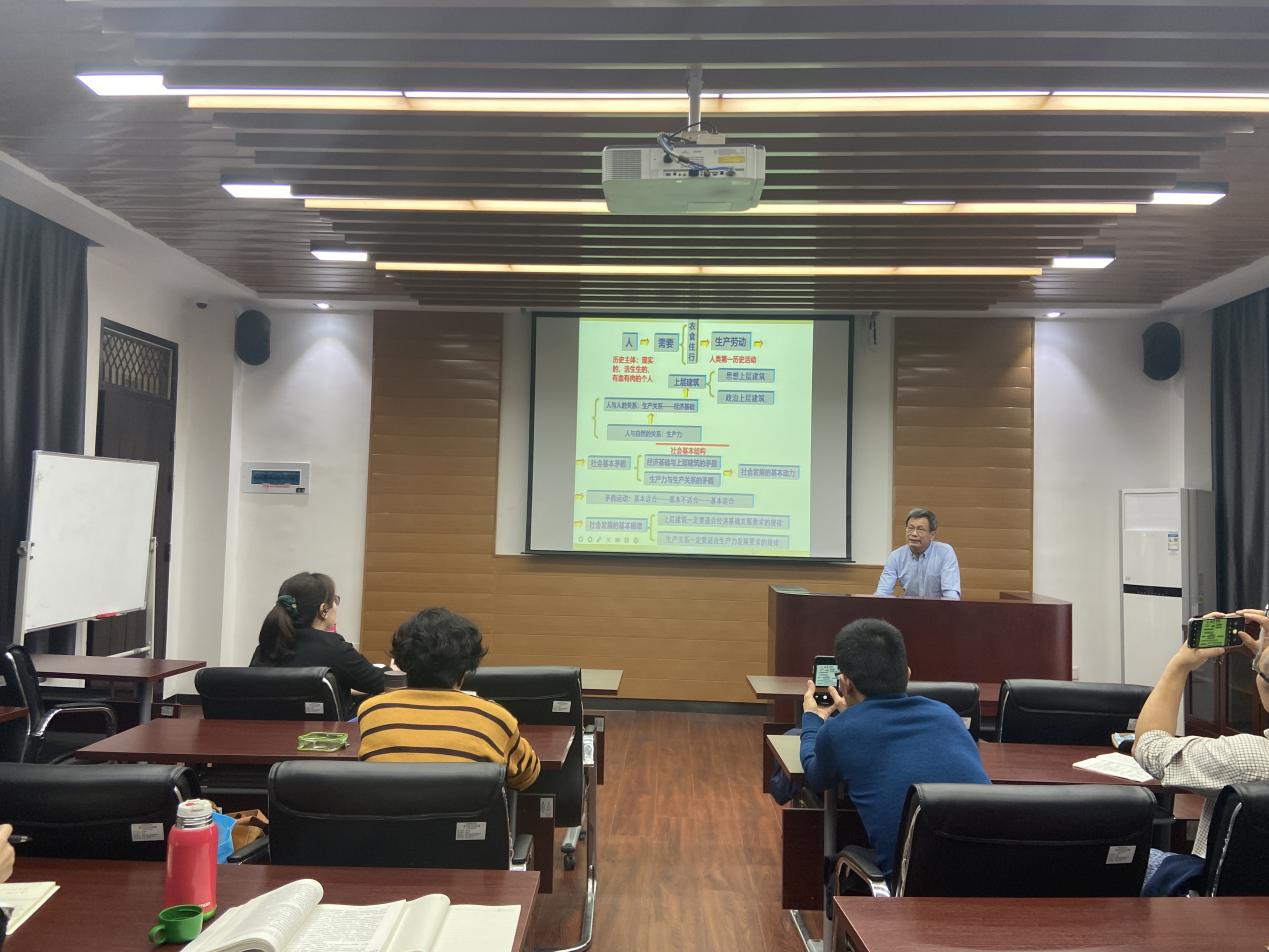10月29日下午,福建省思想政治理论课教学指导委员会副主任委员、原福州大学马克思主义学院院长庄穆教授应邀到新葡的京集团作题为《整体把握马克思主义社会历史观的理论与逻辑》的示范教学。新葡的京集团马克思主义学院相关教师参加学习。