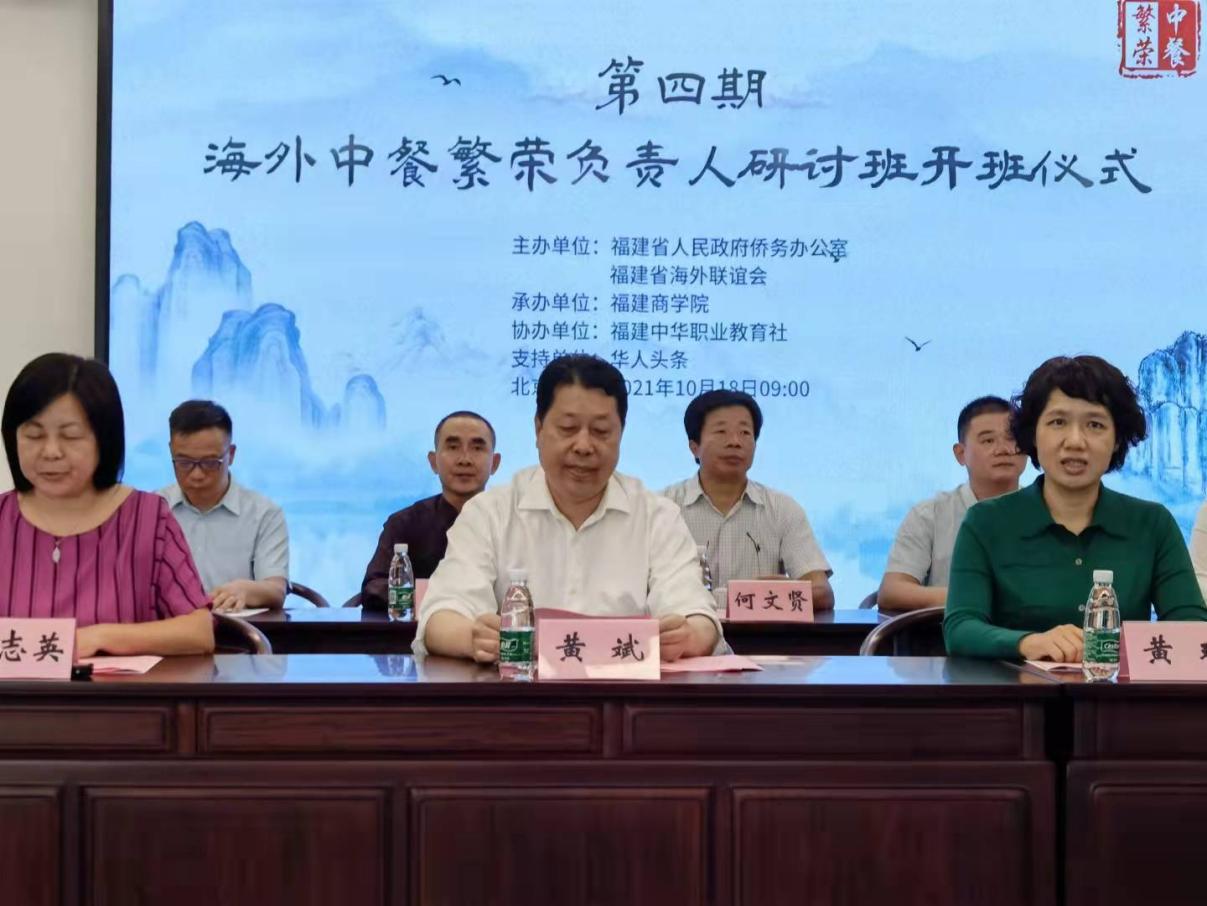 10月18日上午,由福建省人民政府侨务办公室、福建省海外联谊会主办,新葡的京集团承办,福建中华职业教育社协办的第四期海外中餐繁荣负责人研讨班在福州开班。省委统战部部务会议成员、福建中华职教社党组书记黄玲,校长黄斌、副校长杨晓翔等出席开班仪式,会议由省委统战部二级巡视员张志英主持。