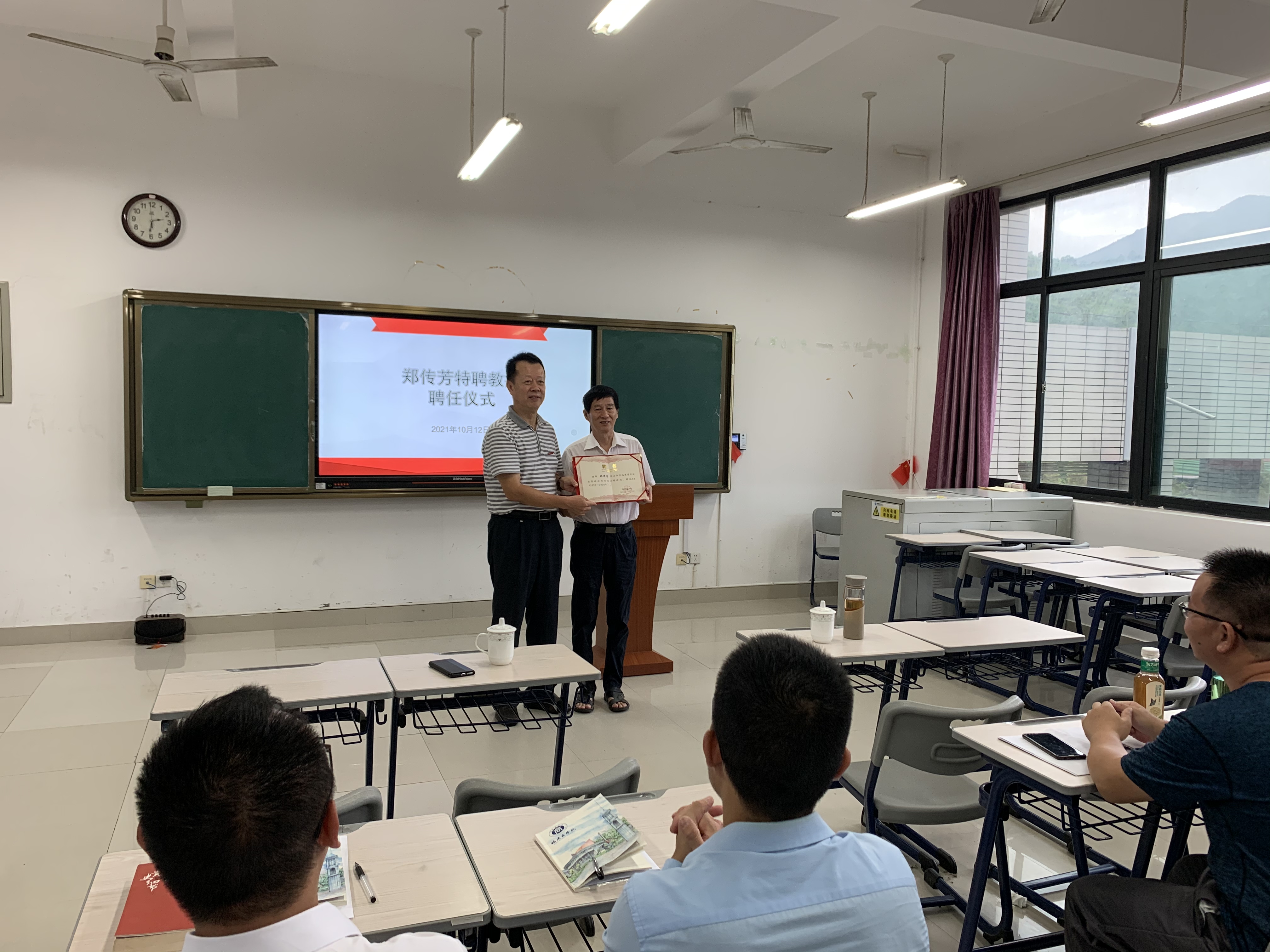 校党委书记刘剑津向郑传芳教授颁发聘书