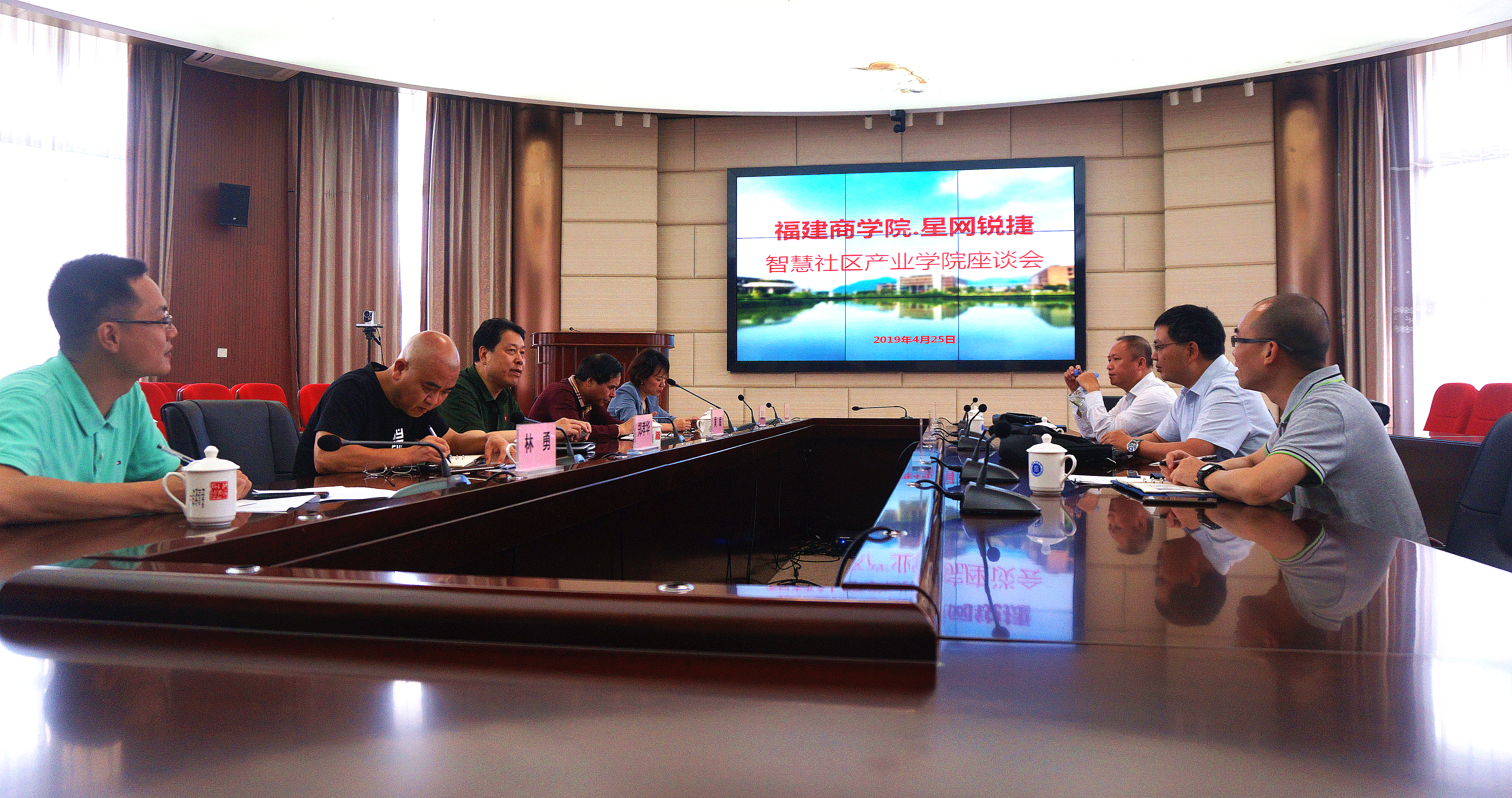 座谈中,黄斌校长指出,学校将坚持立足福建,辐射东南,面向现代服务业和新兴产业,建设商科优势明显、办学特色鲜明的应用型本科高校,强化学校服务经济社会发展功能,以期与优质企业方共建优势互补、共同发展,紧密结合、深度合作的人才培养机制。林善和总经理介绍了星网锐捷近年来致力于中国信息化事业发展的概况,并重点就星网NexHome学院与各大院校进行产学联动,打通产学结合的最后一公里,为社会培养和储备高水平物联网人才的经验进行了交流。随后袁新文副校长、张大湘副总经理以及其他与会人员也分别对建立智慧社区产业学院交换了意见。