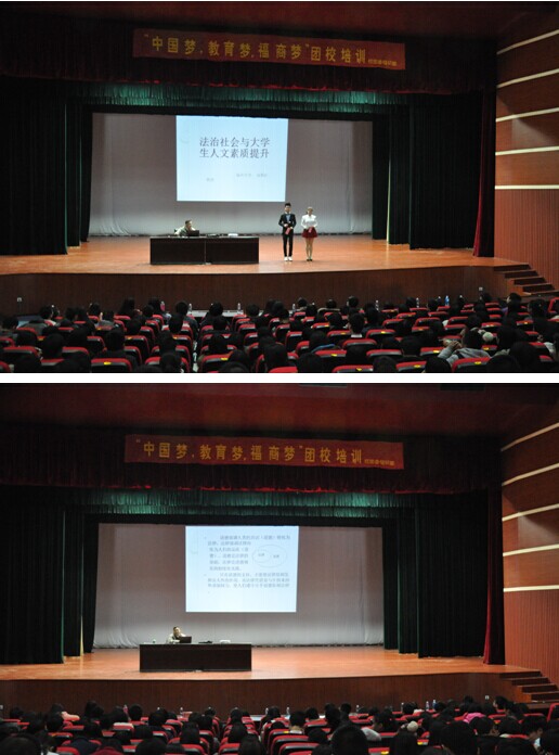 为了让更多的当代大学生明白法制道德,提高大学生的自觉意识,教育大学生做一名知法守法、明礼懂礼的好公民,新葡的京集团团委于12月23日下午两点半在贵安校区大学生活动中心,开展了“法治社会与大学人文素质提升”专题讲座,省委讲师团成员汤黎虹教授受邀开讲。2014年团校学员、校系班学生干部共300多人聆听了讲座。